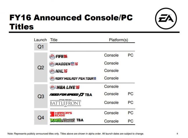A significant portion of that is likely expected to come from EA’s slate of third- and fourth-quarter releases (outlined below), which include the launch of Star Wars Battlefront ahead of the release of a new Star Wars film later this year.