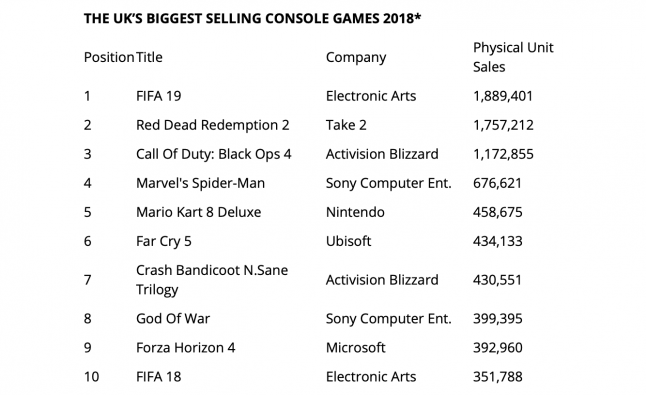 You can find out more by checking out the ERA’s full report right here. We’ve also taken the liberty of highlighting the UK’s best selling physical console games of 2018 below.